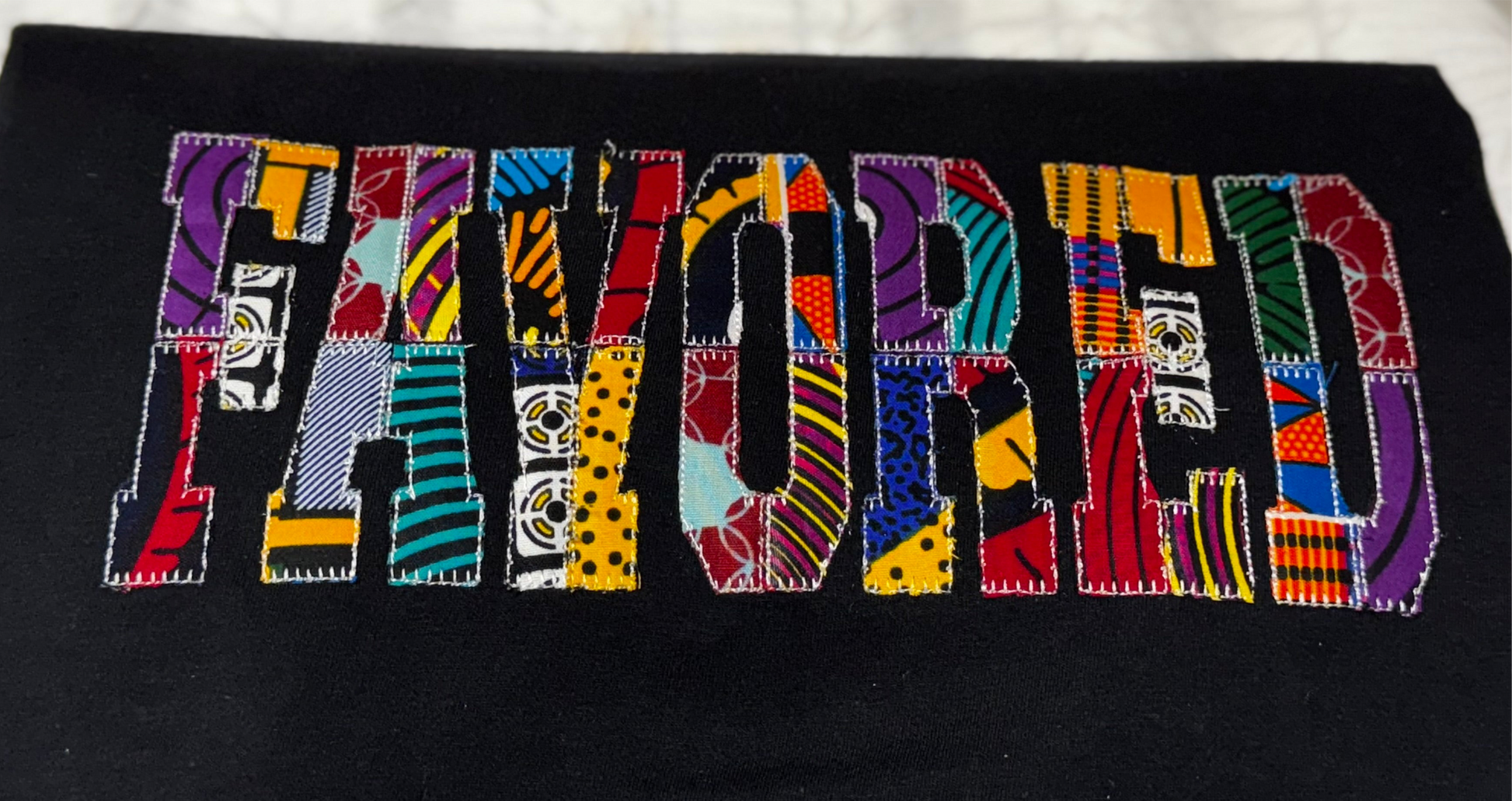 Walk boldly in God’s promises with our FAVORED tee. Each letter is crafted from vibrant patchwork Ankara prints, making every design truly one-of-a-kind—just like your journey. This appliqué piece is more than fashion; it’s a declaration of faith, a daily reminder that His favor surrounds you like a shield.