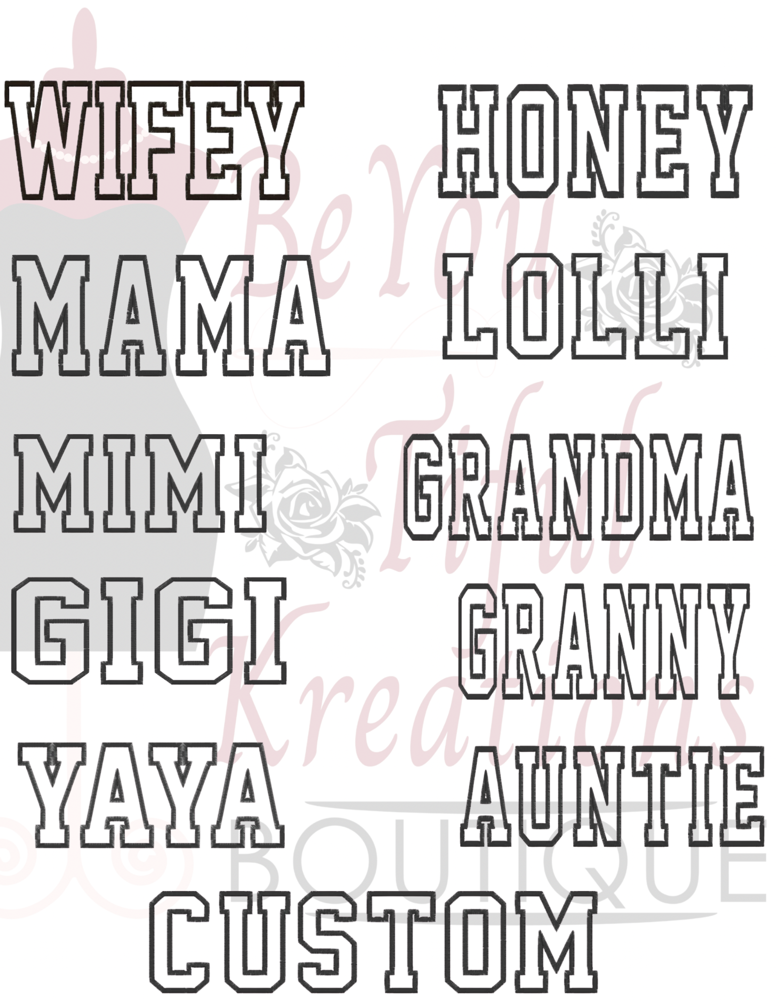 If desired name is not listed, select "CUSTOM" and enter in notes at checkout.